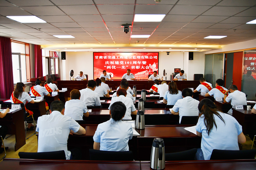 6月30日,甘肅省交通工程建設(shè)監(jiān)理有限責(zé)任公司召開慶祝建黨101周年暨“兩優(yōu)一先”表彰大會(huì)。交通監(jiān)理公司領(lǐng)導(dǎo)班子成員,機(jī)關(guān)及子公司全體黨員、中層干部,受表彰的先進(jìn)集體和優(yōu)秀個(gè)人代表共計(jì)30余人在主會(huì)場參加表彰大會(huì),各項(xiàng)目機(jī)構(gòu)在分會(huì)場參會(huì)。會(huì)議由交通監(jiān)理公司黨委副書記、總經(jīng)理丁峰主持。