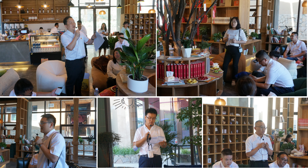 在棲云小鎮(zhèn)書吧開展的“一心永向黨,喜迎二十大”的交流研討會(huì)上,羅堯同志代表第五黨支部作主題發(fā)言。他首先對(duì)參加本次主題黨日活動(dòng)的同志們表示歡迎和感謝,然后為大家深入講解并解讀了我省第十四次黨代會(huì)提出的“一核三帶”省域發(fā)展新藍(lán)圖和“四強(qiáng)”行動(dòng)相關(guān)要點(diǎn),并倡議每一位規(guī)劃工作從業(yè)者應(yīng)當(dāng)加強(qiáng)政治學(xué)習(xí),提高政治站位,在全面把握全省重大政治任務(wù)的前提下,與時(shí)俱進(jìn),緊密聯(lián)系實(shí)際開展規(guī)劃設(shè)計(jì)工作,并著眼長(zhǎng)遠(yuǎn)、聚焦重點(diǎn),充分發(fā)揮技術(shù)優(yōu)勢(shì),助力全面推進(jìn)甘肅經(jīng)濟(jì)社會(huì)高質(zhì)量發(fā)展。黨委辦公室主任樊曉丹同志作了“高度重視黨建工作,推動(dòng)黨建工作和業(yè)務(wù)工作深度融合”的主題發(fā)言。她首先肯定了第五黨支部一直以來(lái)在黨建工作中取得的成績(jī),并鼓勵(lì)支部應(yīng)當(dāng)百尺竿頭更進(jìn)一步,積極打造黨建品牌,不斷提升基層黨建工作的引領(lǐng)力、號(hào)召力和吸引力。團(tuán)委書記劉斌同志以《回顧百年團(tuán)史,匯聚青春力量》為題,講授了一堂生動(dòng)的黨課,帶領(lǐng)大家一起走進(jìn)百年團(tuán)史,追尋信仰之光,勇?lián)啻菏姑?,倡議廣大團(tuán)員應(yīng)當(dāng)緊跟黨走,擔(dān)時(shí)代之責(zé),做新征程的奮進(jìn)者、開拓者和奉獻(xiàn)者,傳遞青春力量,綻放青春芳華,用青春和熱血書寫新時(shí)代壯麗篇章。其他黨員及入黨積極分子也從自身學(xué)習(xí)和工作實(shí)際出發(fā),分別就基層黨建、政治理論學(xué)習(xí)、黨員先鋒模范作用發(fā)揮等方面交流了各自的所思所感。