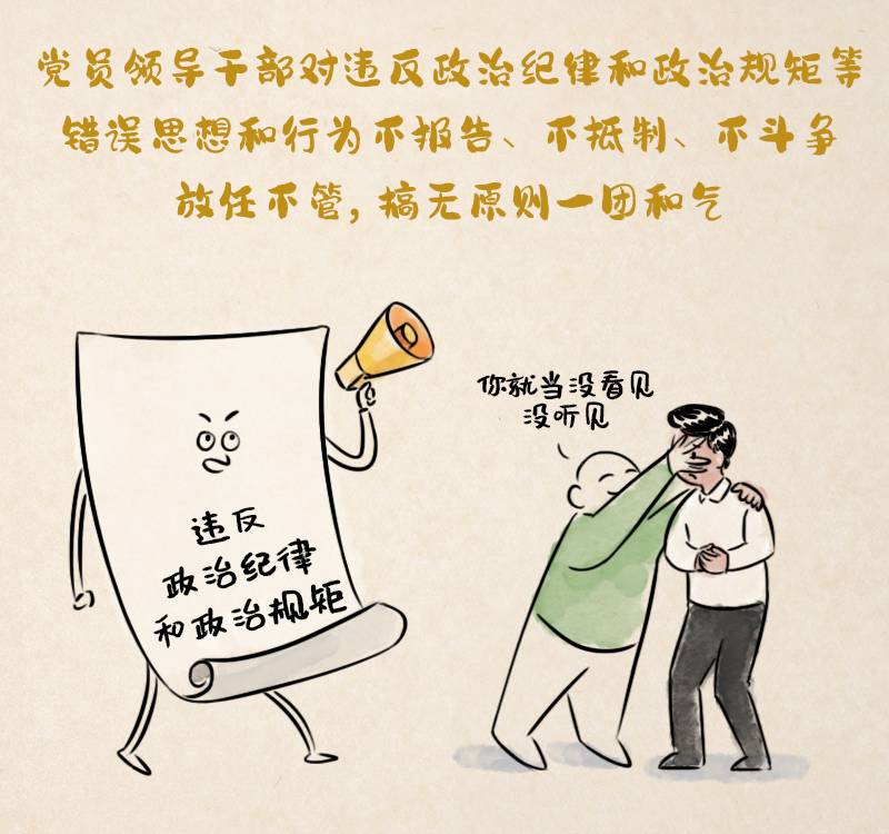 第七十五條 黨員領導干部對違反政治紀律和政治規(guī)矩等錯誤思想和行為不報告、不抵制、不斗爭,放任不管,搞無原則一團和氣,造成不良影響的,給予警告或者嚴重警告處分;情節(jié)嚴重的,給予撤銷黨內職務或者留黨察看處分。