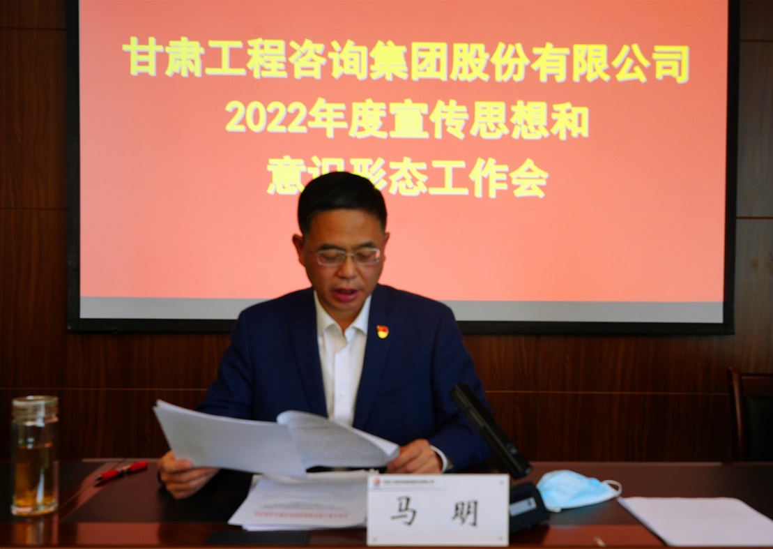 3月28日,甘肅工程咨詢集團(tuán)召開2022年度宣傳思想和意識(shí)形態(tài)工作會(huì)議,傳達(dá)學(xué)習(xí)了全國、全省宣傳部長會(huì)議精神,黨委副書記王春燕總結(jié)了2021年度宣傳思想和意識(shí)形態(tài)工作情況并安排部署2022年度工作,黨委副書記、總經(jīng)理馬明作講話。黨委委員、監(jiān)事會(huì)主席焦軍毅主持會(huì)議,集團(tuán)公司領(lǐng)導(dǎo)班子成員,相關(guān)部門負(fù)責(zé)人在主會(huì)場參加,各子公司黨委書記、董事長(執(zhí)行董事)、總經(jīng)理、黨委副書記,相關(guān)部門負(fù)責(zé)人在分會(huì)場參加。
