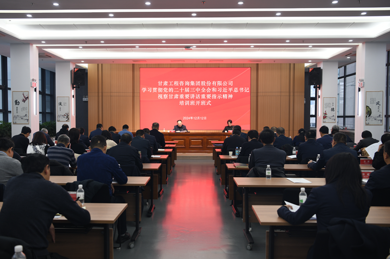12月12日,甘肅工程咨詢集團學習貫徹黨的二十屆三中全會和習近平總書記視察甘肅重要講話重要指示精神培訓班開班。集團公司黨委副書記、總經理張佩峰出席開班式并講話,黨委副書記王春燕主持開班式。
