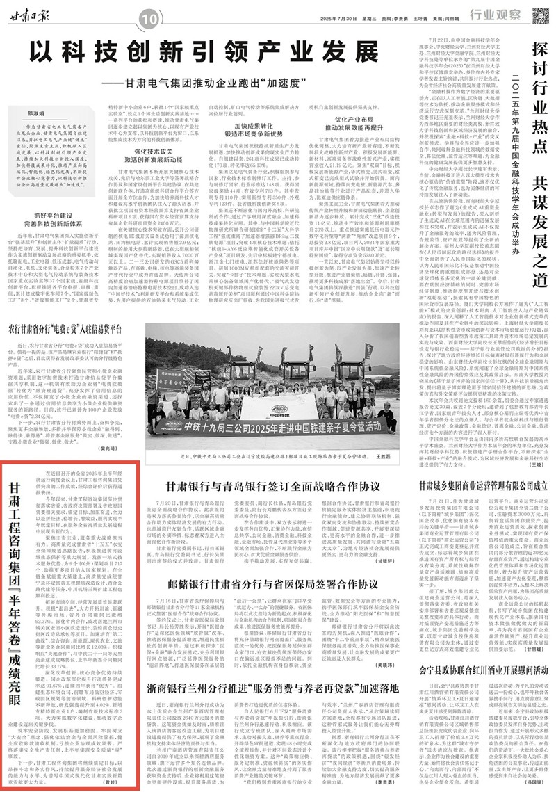 今年以來,甘肅工程咨詢集團堅決貫徹落實省委、省政府決策部署及省政府國資委相關(guān)要求,錨定目標、加壓奮進,全力以赴拼經(jīng)濟、穩(wěn)增長、增效益,順利實現(xiàn)半年既定目標,在服務全省高質(zhì)量發(fā)展進程中展現(xiàn)出新作為。
