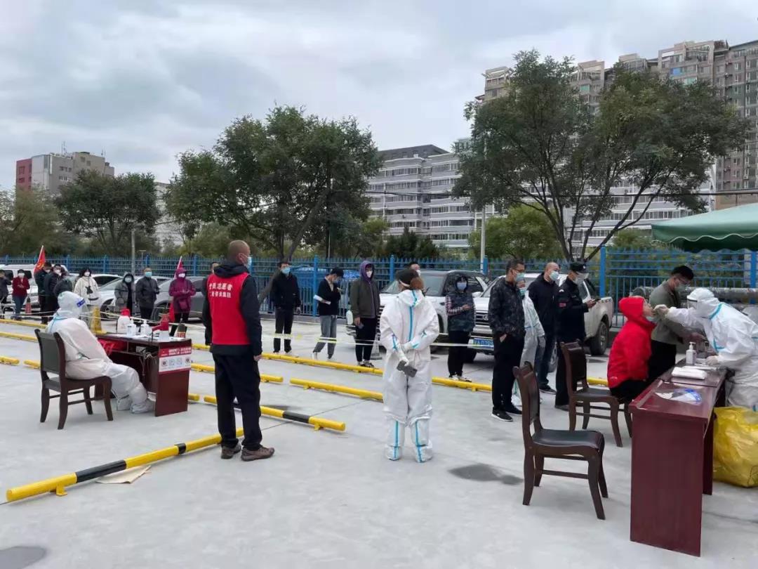 “您好”“請(qǐng)不要擁擠”“提前打開健康碼”……這是土木工程院的后勤管理部工作人員在有序指揮前來進(jìn)行核酸檢測(cè)的職工和家屬。
