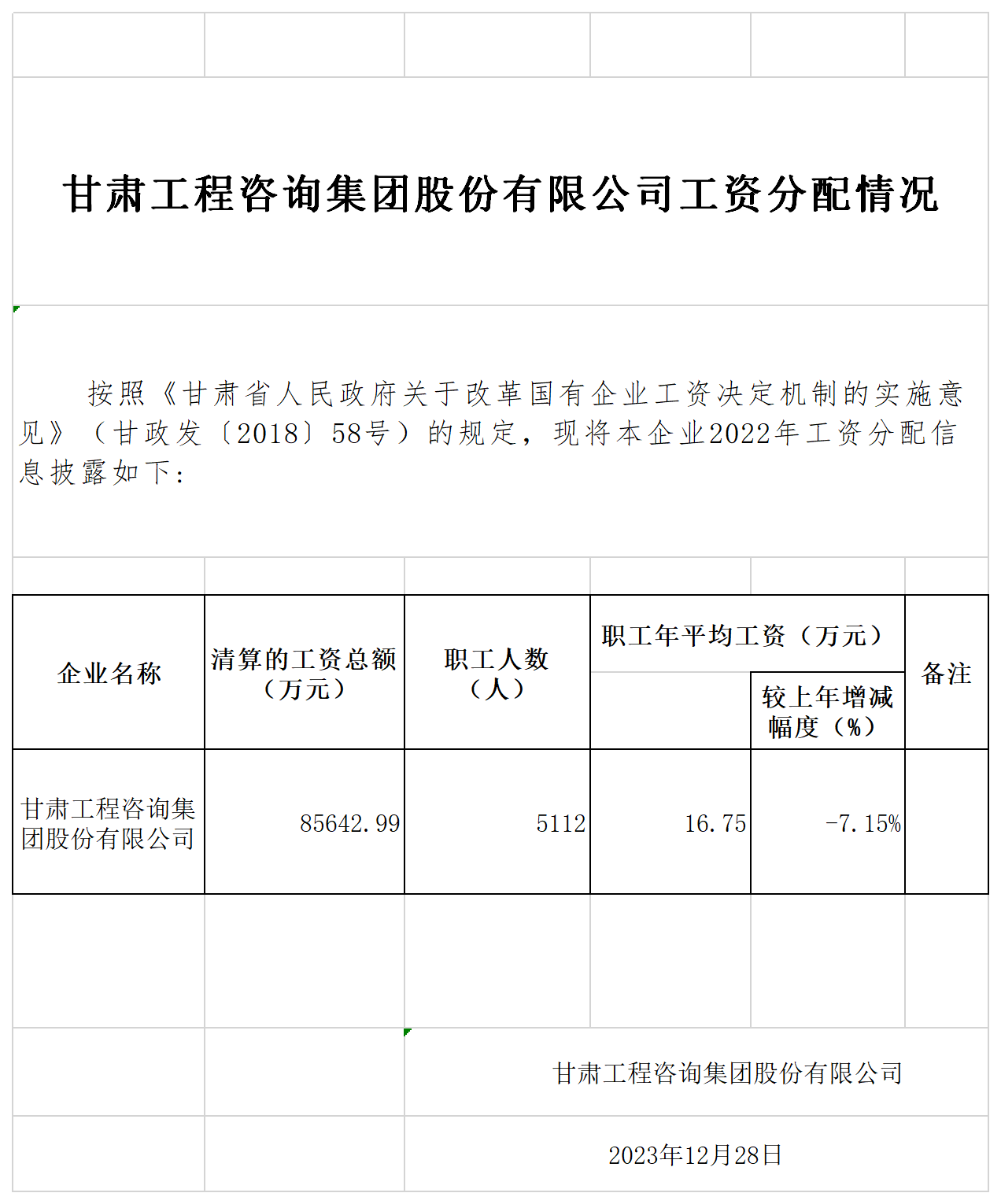 甘肅工程咨詢集團(tuán)股份有限公司董事、監(jiān)事、高級管理人員2022年度薪酬情況及甘肅工程咨詢集團(tuán)股份有限公司工資分配情況