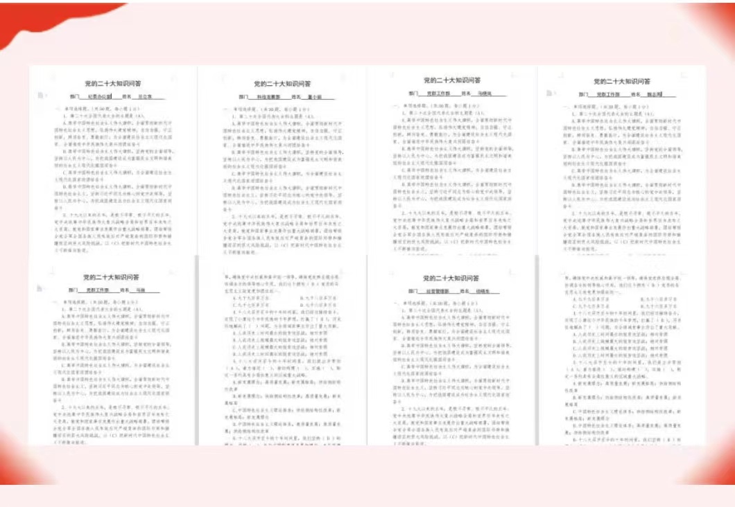 積極組織全體黨員開展黨的二十大報告相關(guān)內(nèi)容線上答題測試活動,檢驗學(xué)習(xí)成效,固化學(xué)習(xí)成果,真正對黨的二十大精神應(yīng)知應(yīng)會盡會,以考促學(xué)強本領(lǐng)、以學(xué)促用增實效。